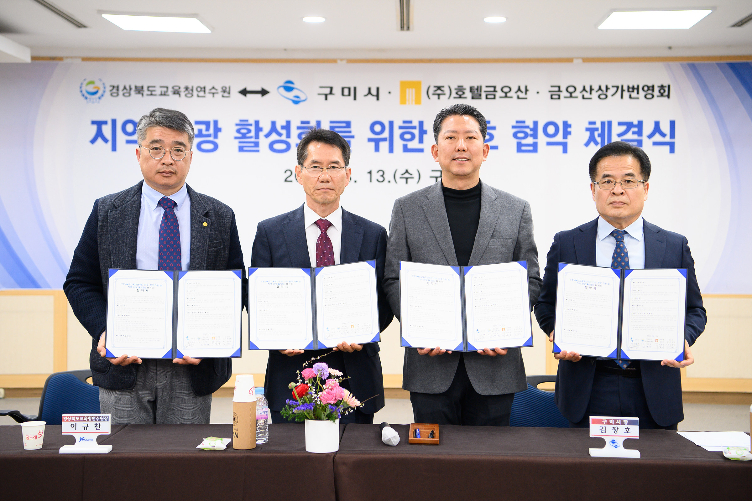 김장호 구미시장은 “이번 협약을 계기로 더욱 긴밀한 협력 관계를 구축해 구미시가 관광하고 싶은 도시, 연수 가고 싶은 도시, 경북의 관광 거점도시로 도약할 수 있도록 노력하겠다.”고 말했다.