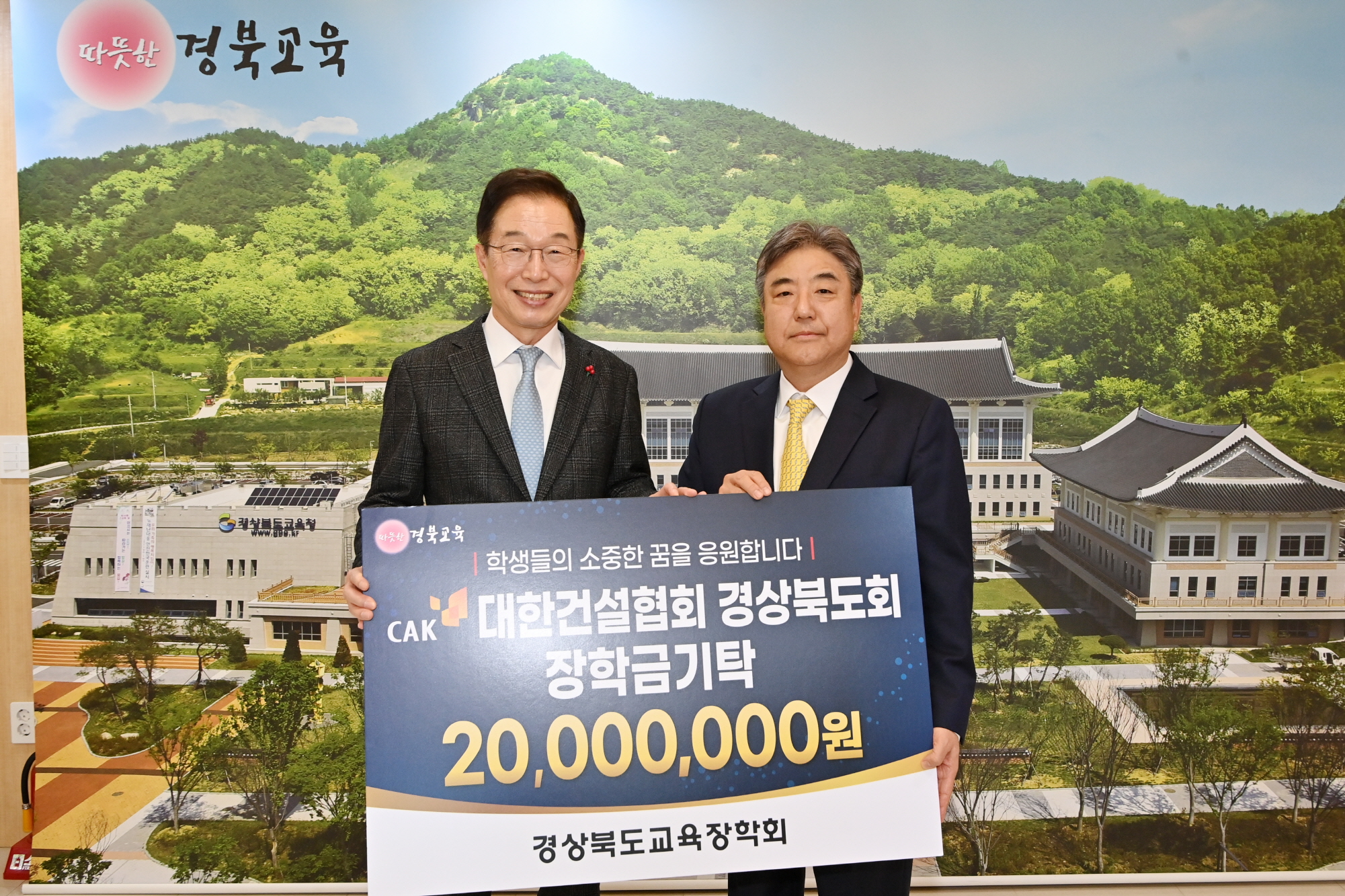 대한건설협회 경상북도회(회장 박한상)은 13일 (재)경상북도교육장학회(이사장 임종식)에 장학금 2,000만 원을 기탁했다.