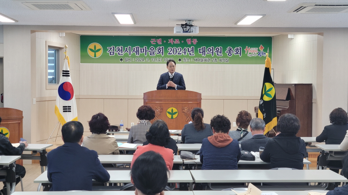 한편, 이날 총회에 참석한 새마을 회원들은 신임 회장 취임을 축하하면서 2024년에도 근면, 자조, 협동의 새마을운동 정신을 근간으로, 함께 사는 따뜻한 세상, 지속 가능한 지구 환경 보전 등 새마을운동의 가치를 높여 무엇보다 우리 김천시민이 모두 행복하고, 살기 좋은 지역으로 만들기 위해 함께 노력할 것을 다짐했다.