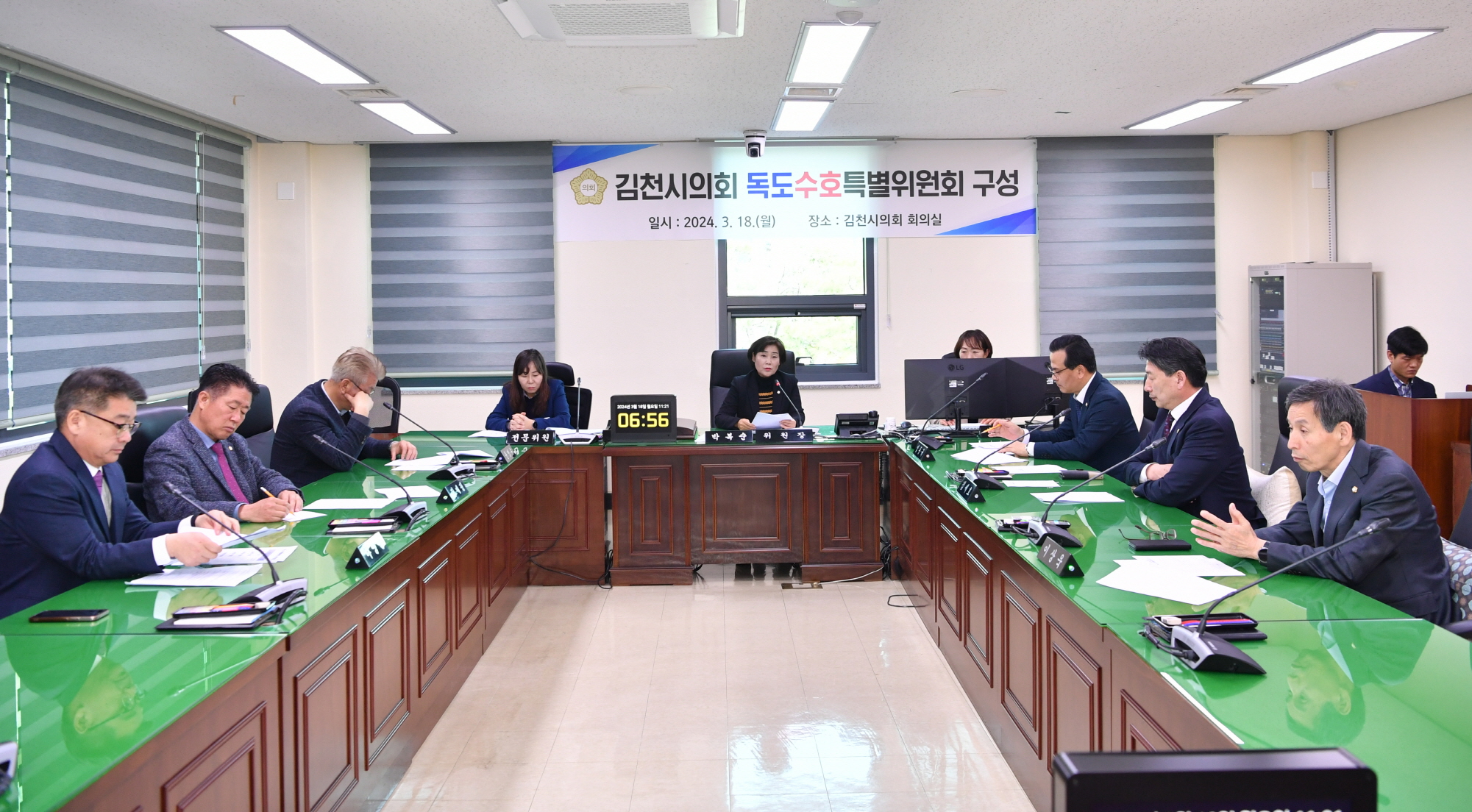 김천시의회는 독도가 역사적·실효적·국제법적으로 엄연히 대한민국 영토임에도 불구하고, 일본 정부는 매년 “독도는 일본영토”라는 터무니없는 주장을 되풀이하고 있는 상황에서 이를 시의회가 강력하고 단호하게 대처하기 위해 독도수호특별위원회를 구성했다.