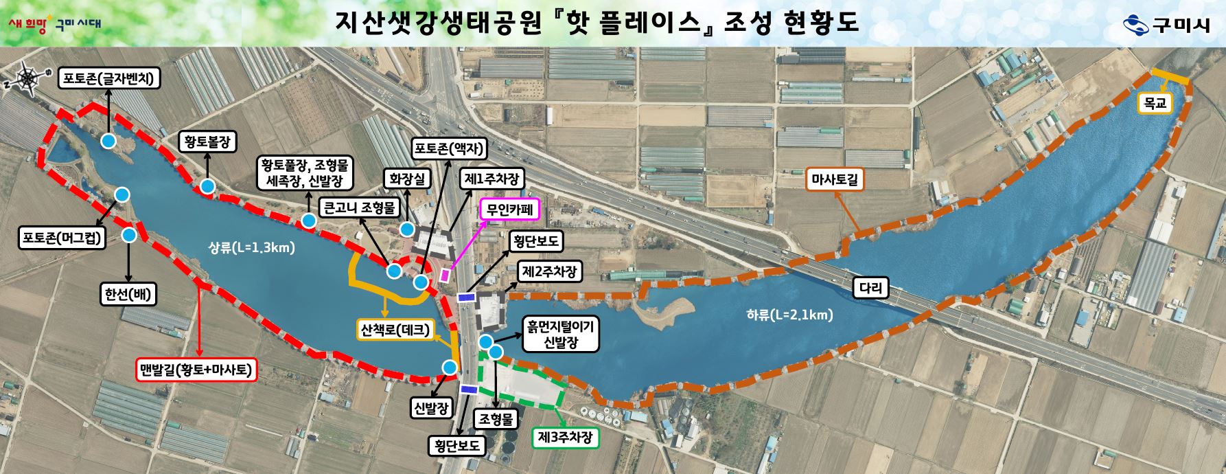 한편, 김장호 구미시장은 “지산샛강생태공원을 도심 속 휴식과 여가 공간뿐만 아니라 즐길 거리를 특색있게 정비해 전국 최고의 생태공원으로 만들겠다.”고 말했다.