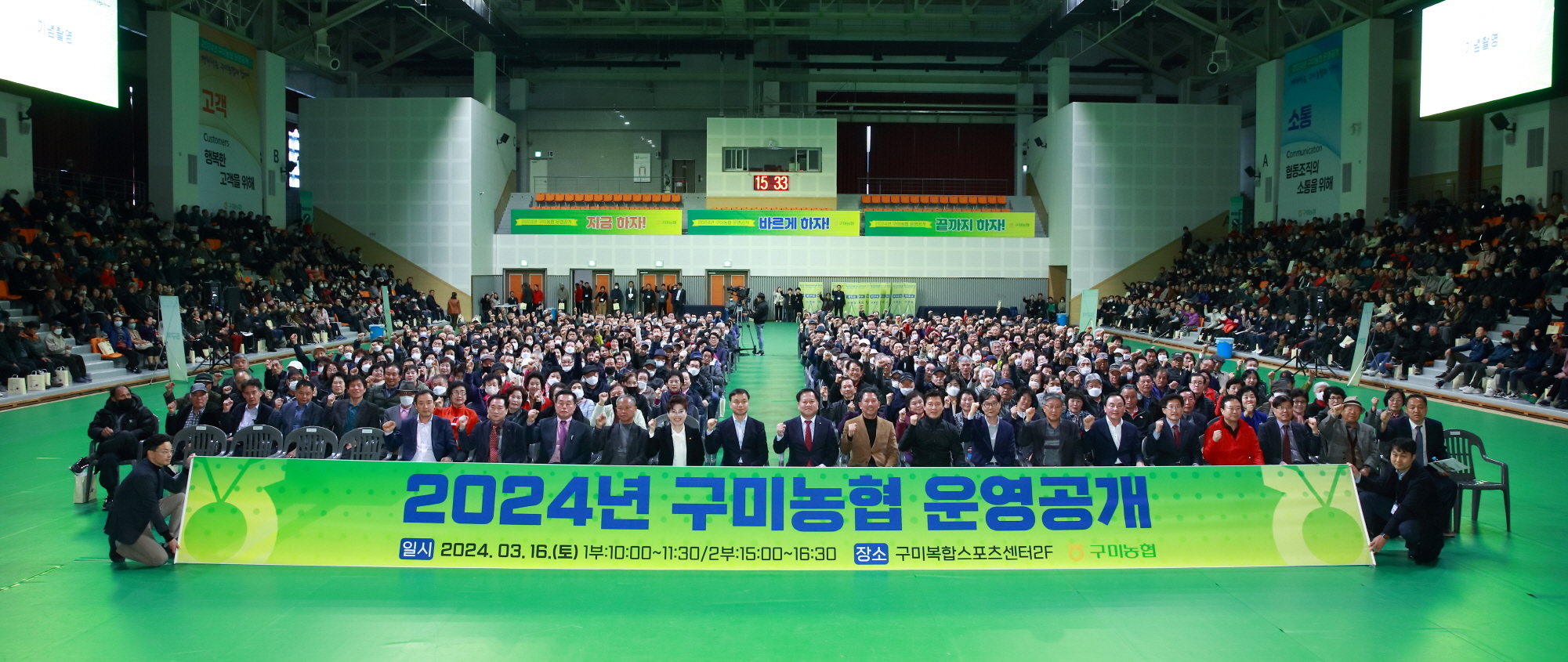 구미농협 2024 운영공개 행사가 지난 16일 구미복합스포츠센터에서 김장호 구미시장, 구자근 국회의원, 구미농협 임원 및 조합원 등 2천여명이 참석한 가운데 성황리에 개최되었다.