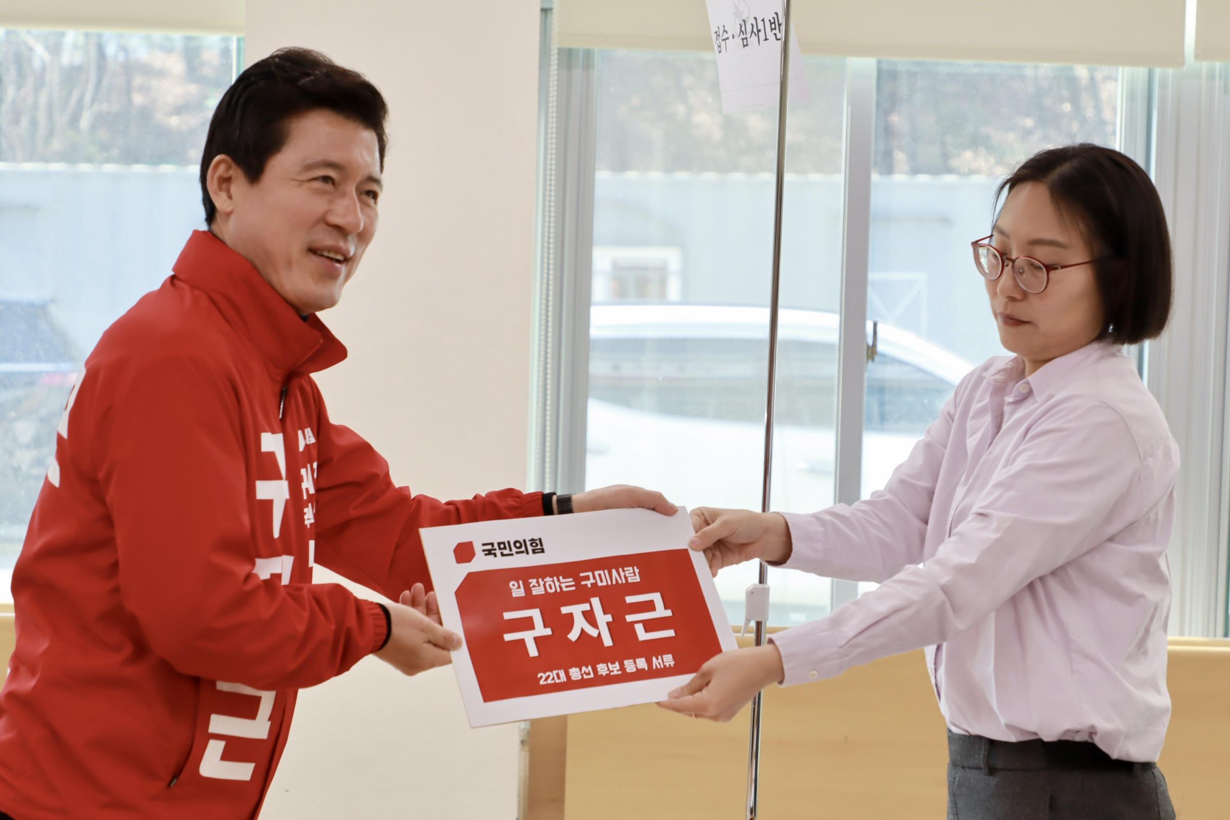 한편, 현 구미시갑 국회의원인 구자근 후보는 초선의원으로 일하며 반도체특화단지 유치, KTX-이음 구미역 정차를 위한 관련 사업의 예비타당성 조사 통과 등 구미의 숙원사업 해결에 앞장서 주목을 받아왔다. 또, 국민의힘 당대표 비서실장, 원내부대표, 대통령직 인수위 상임기획위원 등을 역임하며 중앙정치에서도 놀라운 정치력을 입증해왔다.
