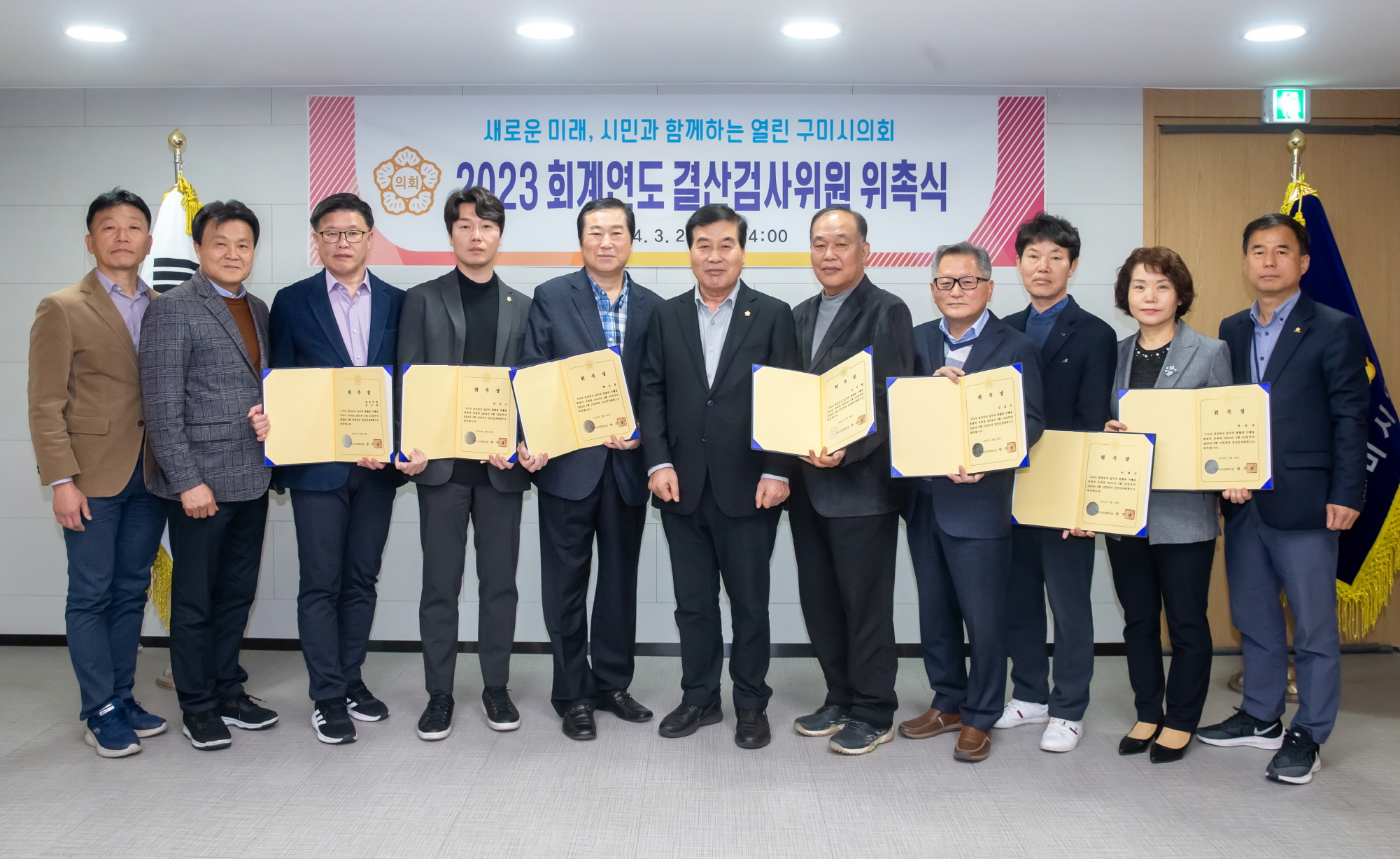 구미시의회(의장 안주찬)는 3월 26일 의장실에서 2023 회계연도 결산검사위원 위촉식을 개최했다.