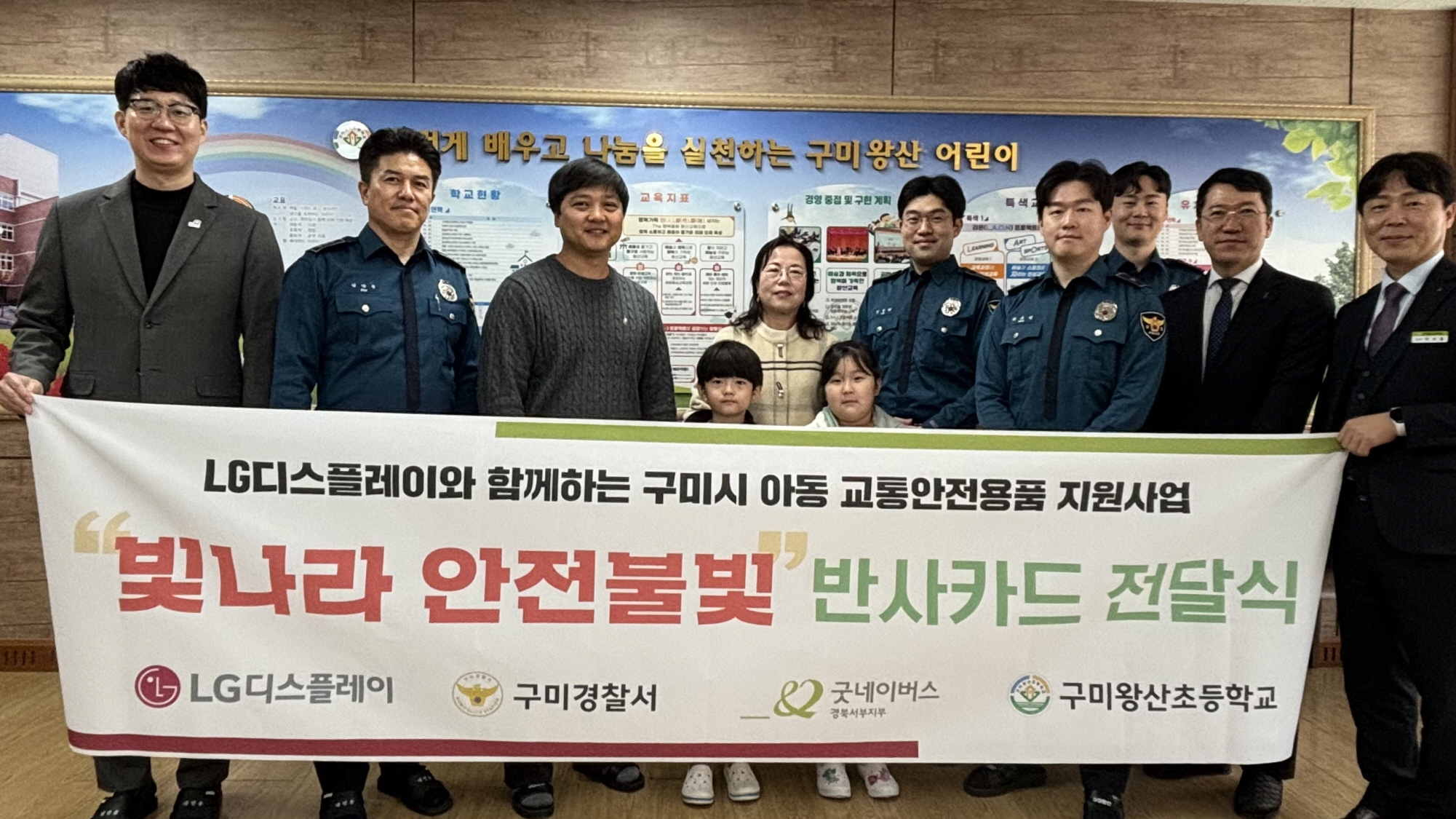 이날 전달식은 구미왕산초등학교에서 진행됐으며 송일수 굿네이버스 경북서부지부장, LG디스플레이 박근희 선임, 구미경찰서 김양훈 경정, 이용희 구미왕산초등학교장 등이 참석한 가운데 이루어졌다.