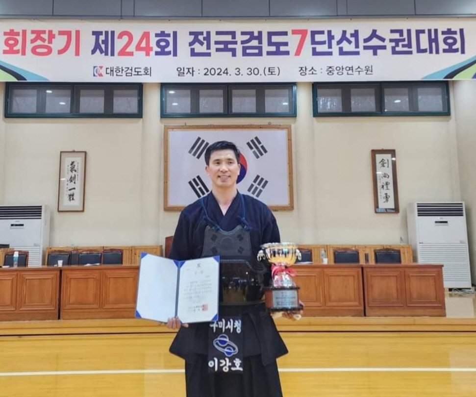이강호 구미시청 검도팀 감독이 지난 30일 대한검도회 중앙연수원에서 열린 회장기 제24회 전국검도7단선수권대회에서 준우승을 차지하며 구미시 검도의 위상을 더 높였다.