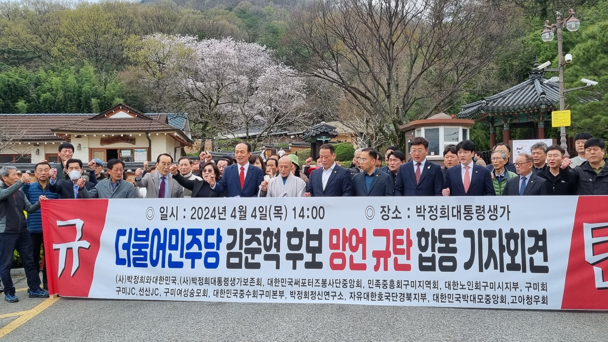 (사)박정희와 대한민국(이사장 김용창)은 4일 박정희대통령생가에서 구미지역 14개 단체 합동으로 더불어민주당 수원정 김준혁 후보 망언 규탄 기자회견을 개최했다.