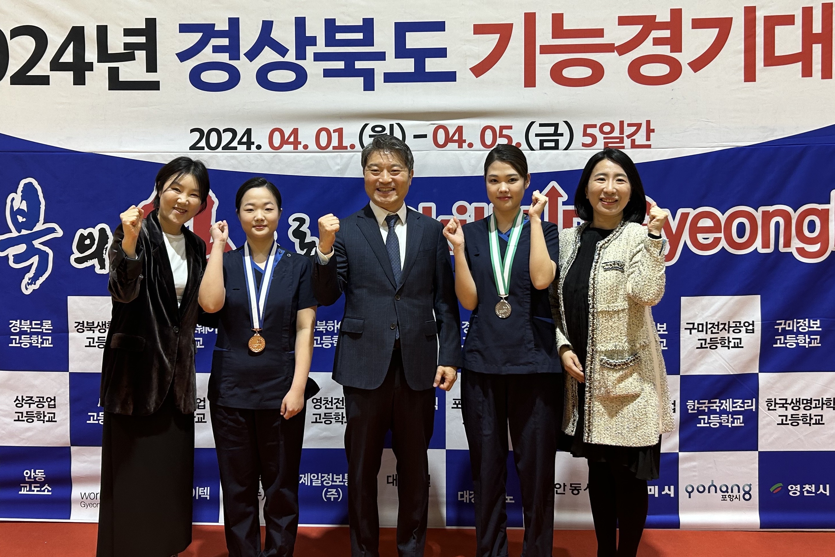 지난 1일부터 5일까지 경북생활과학고에서 열린 ‘2024년 경북기능경기대회’에서 의료뷰티디자인학부 의료뷰티맞춤화장품전공 박지은(2학년) 학생이 은메달, 김한별(2학년) 학생이 동메달을 각각 수상했다.