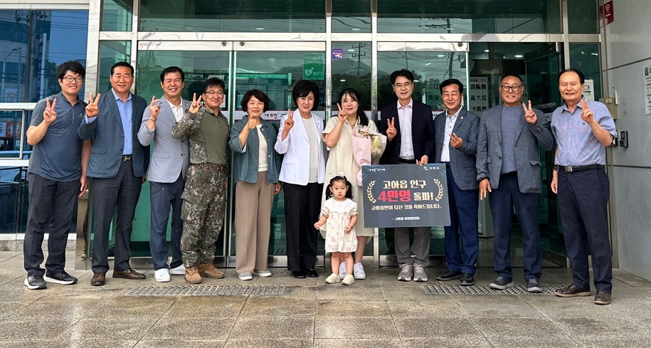 엄기득 고아읍장은 “인구 4만 명 돌파는 단순한 숫자를 넘어 고아읍의 성장 가능성을 보여주는 신호”라며 “다양한 인프라 확충과 지역 활성화 방안을 지속적으로 추진해 주민들이 체감할 수 있는 변화를 만들어 가겠다.”고 말했다.