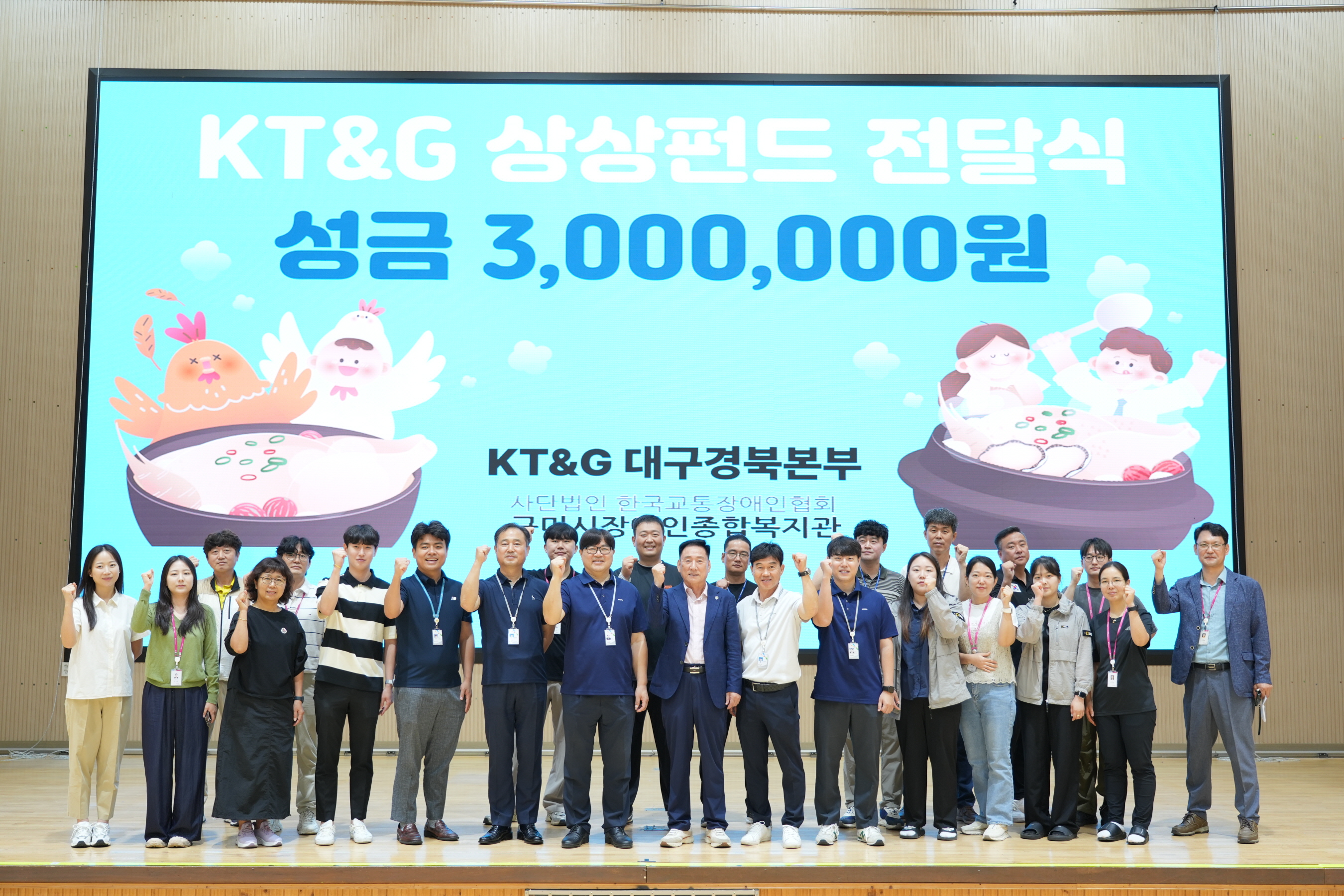 ‘상상펀드 전달’과 ‘복맞이 사랑의 삼계탕 나눔’ 행사는 기록적인 폭염으로 어려움을 겪고 있는 지역 소외계층을 위로하고 어려운 이웃들에게 건강과 희망을 나누고자 기획되었으며 KT&G 대구경북본부 임직원 40여명이 직접 참여해 그 의미를 더했다.
