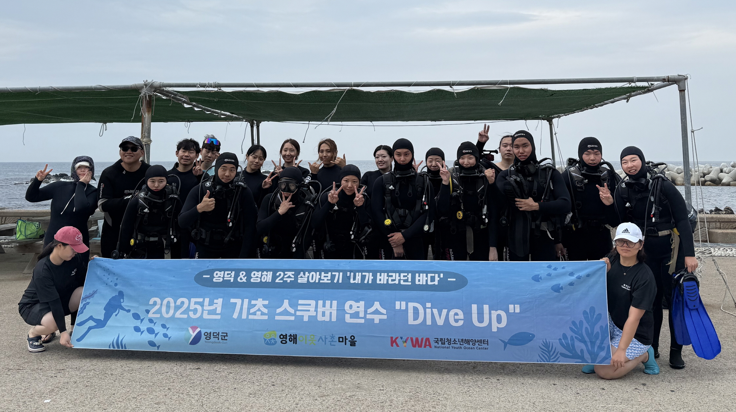 청년 참가자(20명)들은 ‘오픈워터’ 과정의 기초스킨다이빙 및 초급 스쿠버다이빙 교육을 수료하며, 수중 수신호, 잠수과학, 잠수기술 등 이론과 영덕의 푸른 바다를 경험할 할 수 있는 실습 등 전문 프로그램을 경험했다.