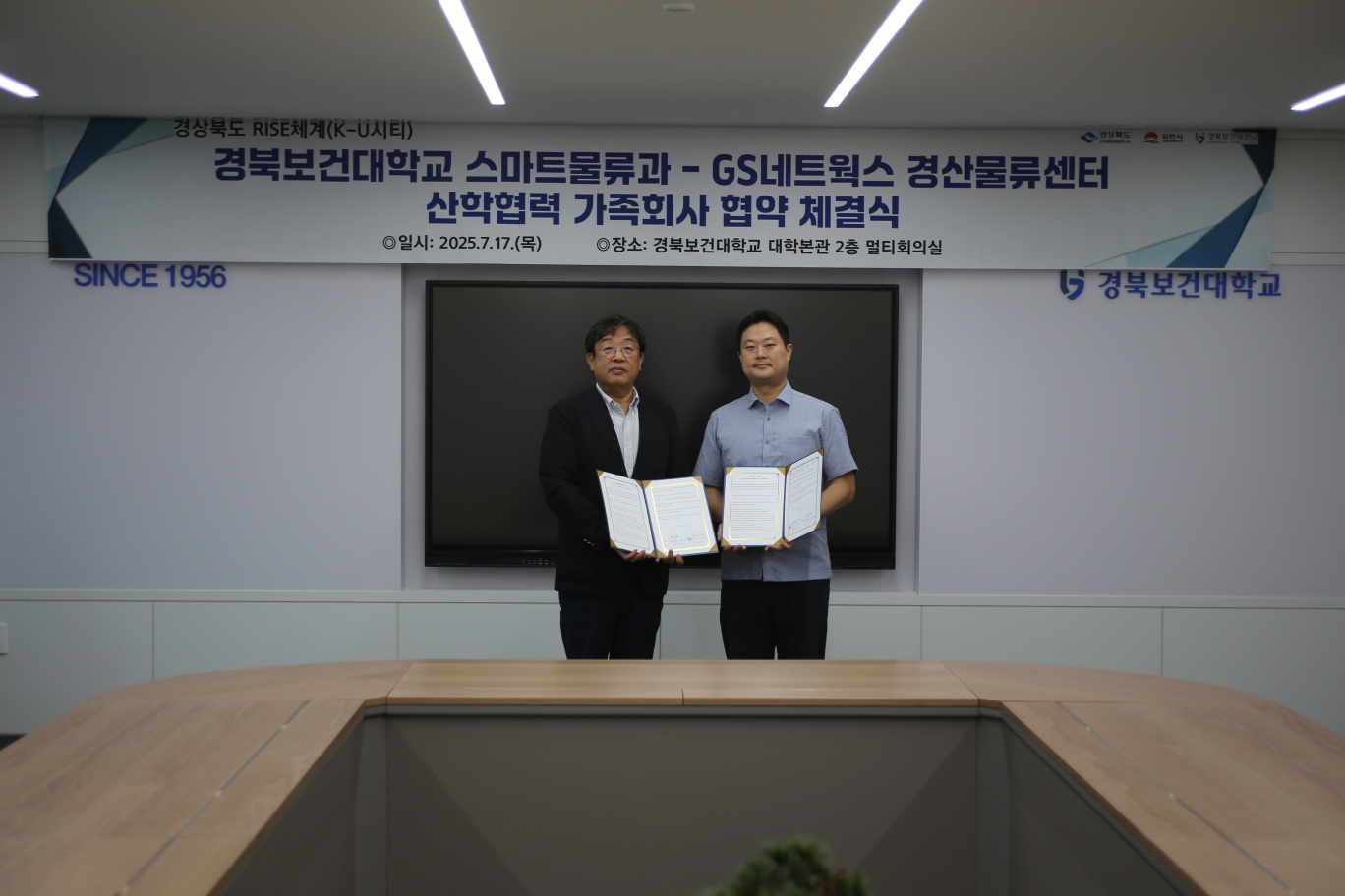 경북보건대학교(총장 이은직)와 ㈜GS네트웍스 경산물류센터(센터장 박민규)는 지난 21일 산학협력 스마트물류과 지역인재 양성 업무협약(MOU)을 체결했다.