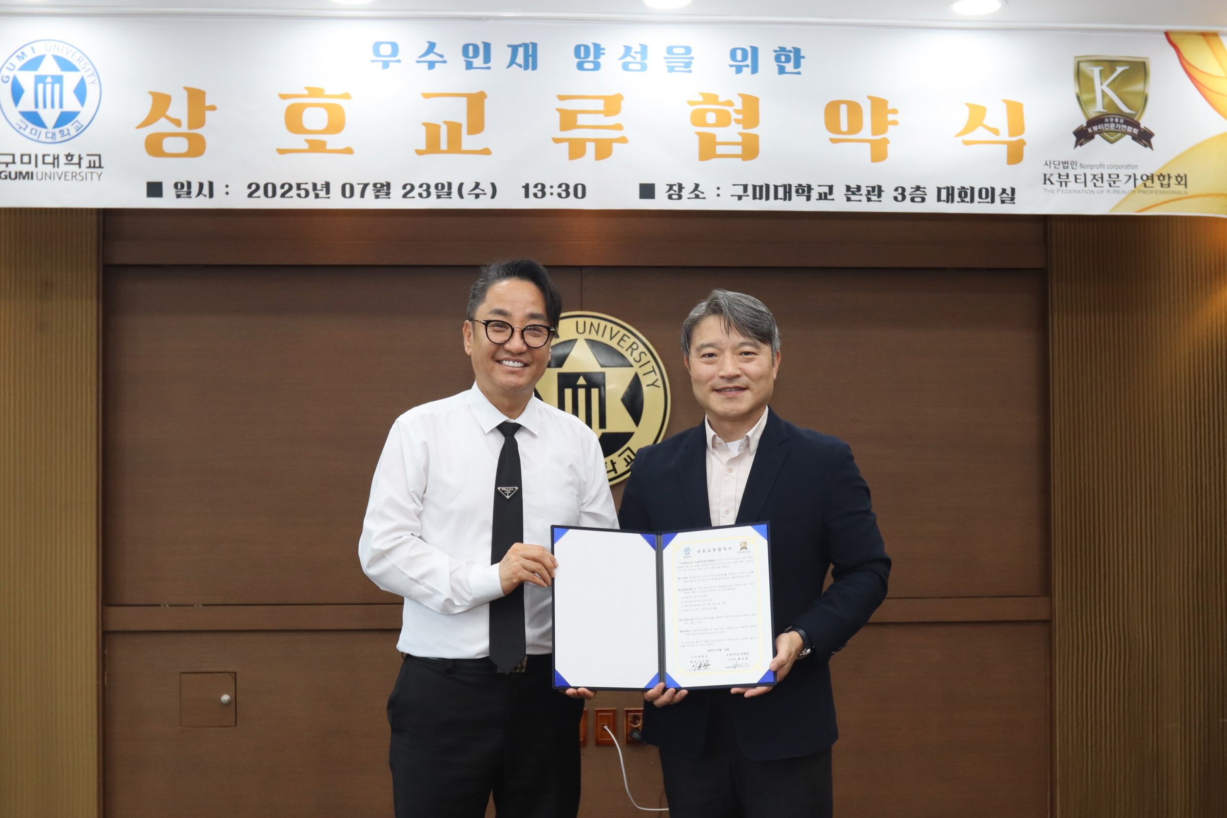 구미대학교(총장 이승환)와 K-뷰티전문가연합회(이사장 황종열)는 뷰티산업 전문 인력 양성을 위해 업무협약을 체결했다.