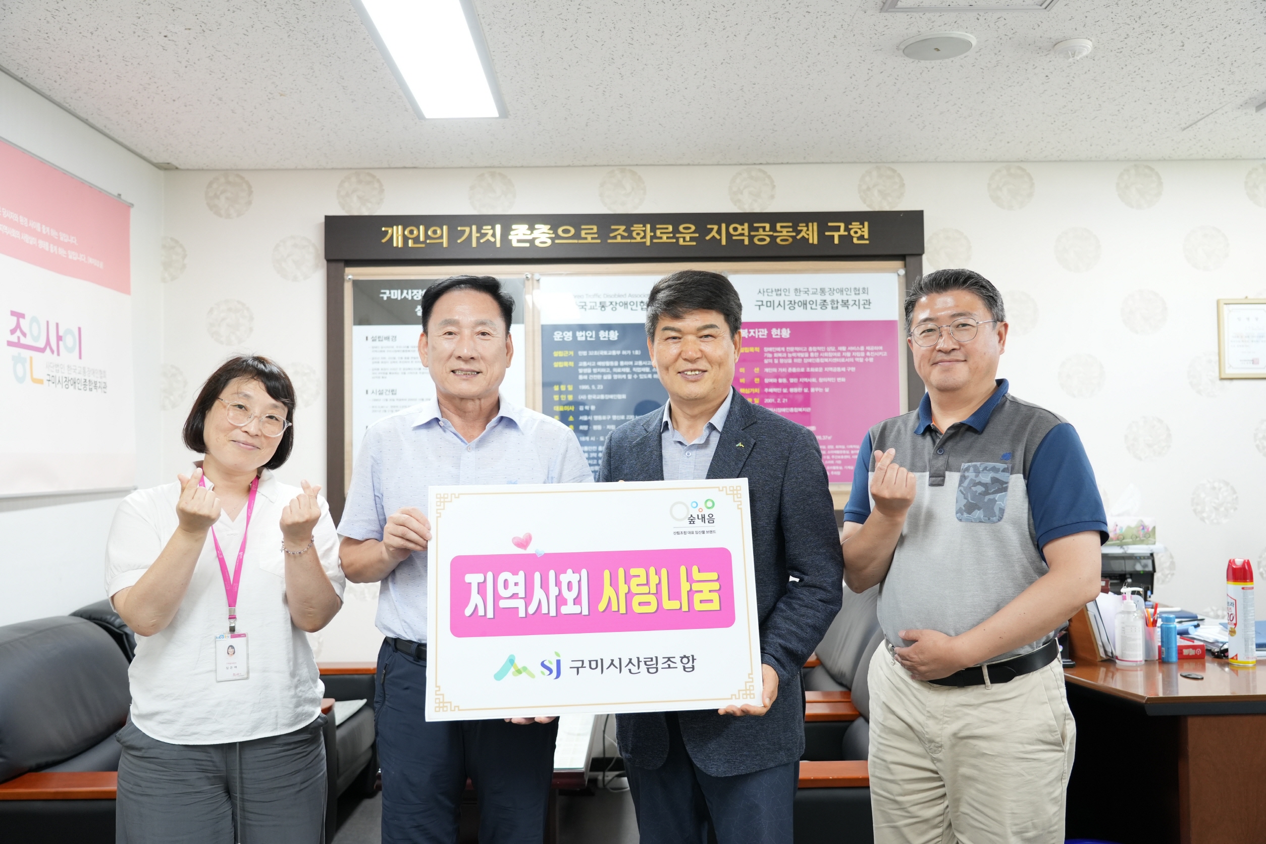 구미시산림조합(조합장 김병철)은 7월 28일 구미시장애인종합복지관(관장 김휴진)에 후원금 100만원을 전달하며 연일 이어지는 무더위 속 지역사회에 따뜻한 온기를 전했다.