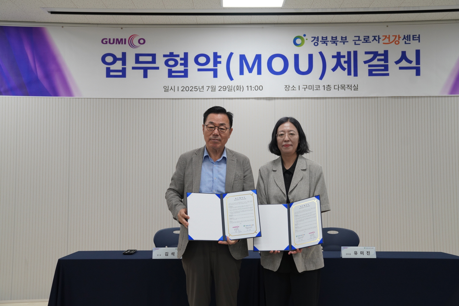 구미코(관장 김석호)는 지난 7월 29일 구미코 1층 다목적실에서 경북북부근로자건강센터(센터장 유미진)와 근로자 건강증진 및 산재 예방 강화를 위한 업무협약(MOU)을 체결했다.