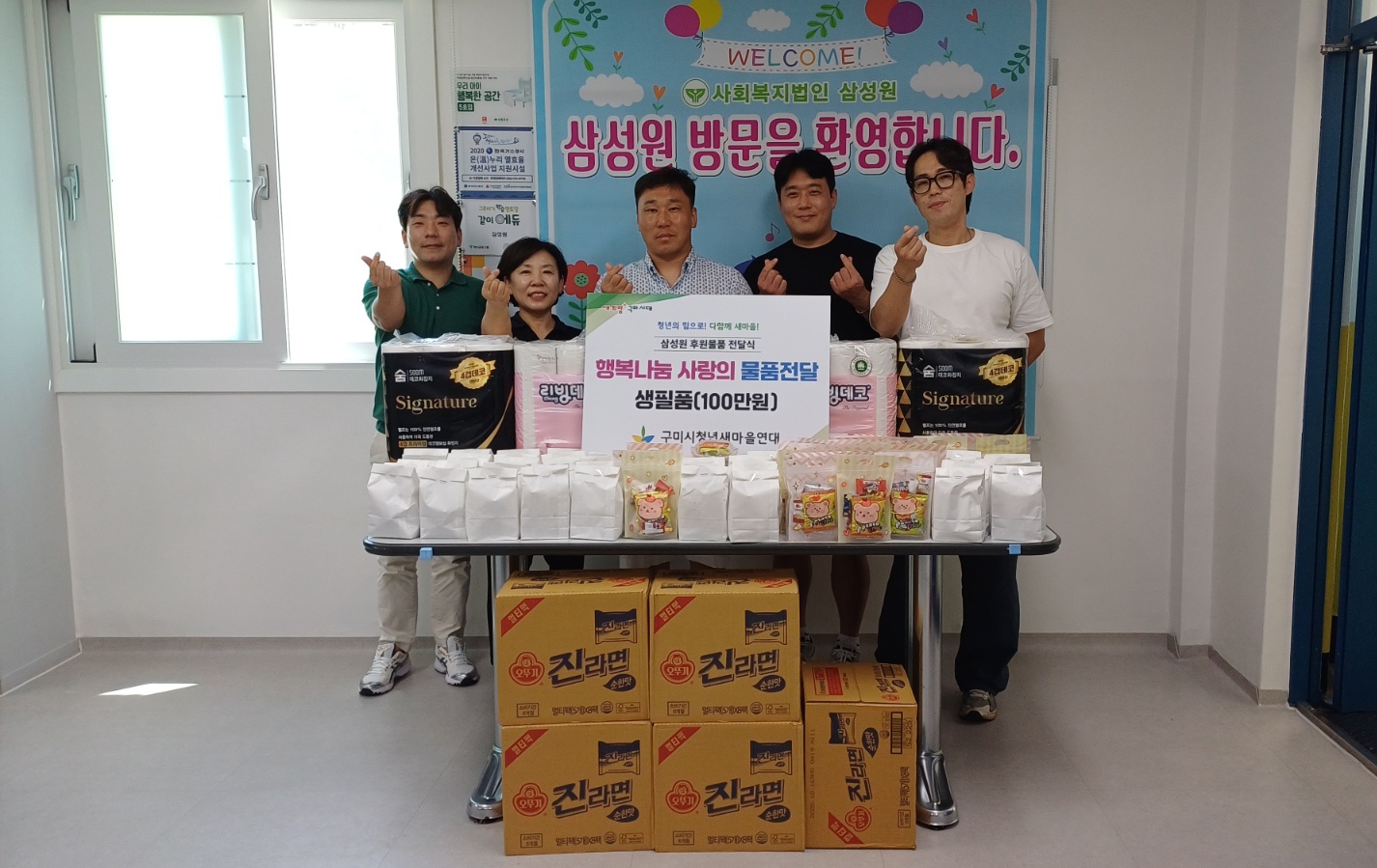 구미시청년새마을연대(회장 박근덕)는 8월 1일 형곡동에 위치한 아동양육시설 ‘삼성원’을 방문해 100만 원 상당의 사랑의 물품을 전달했다.