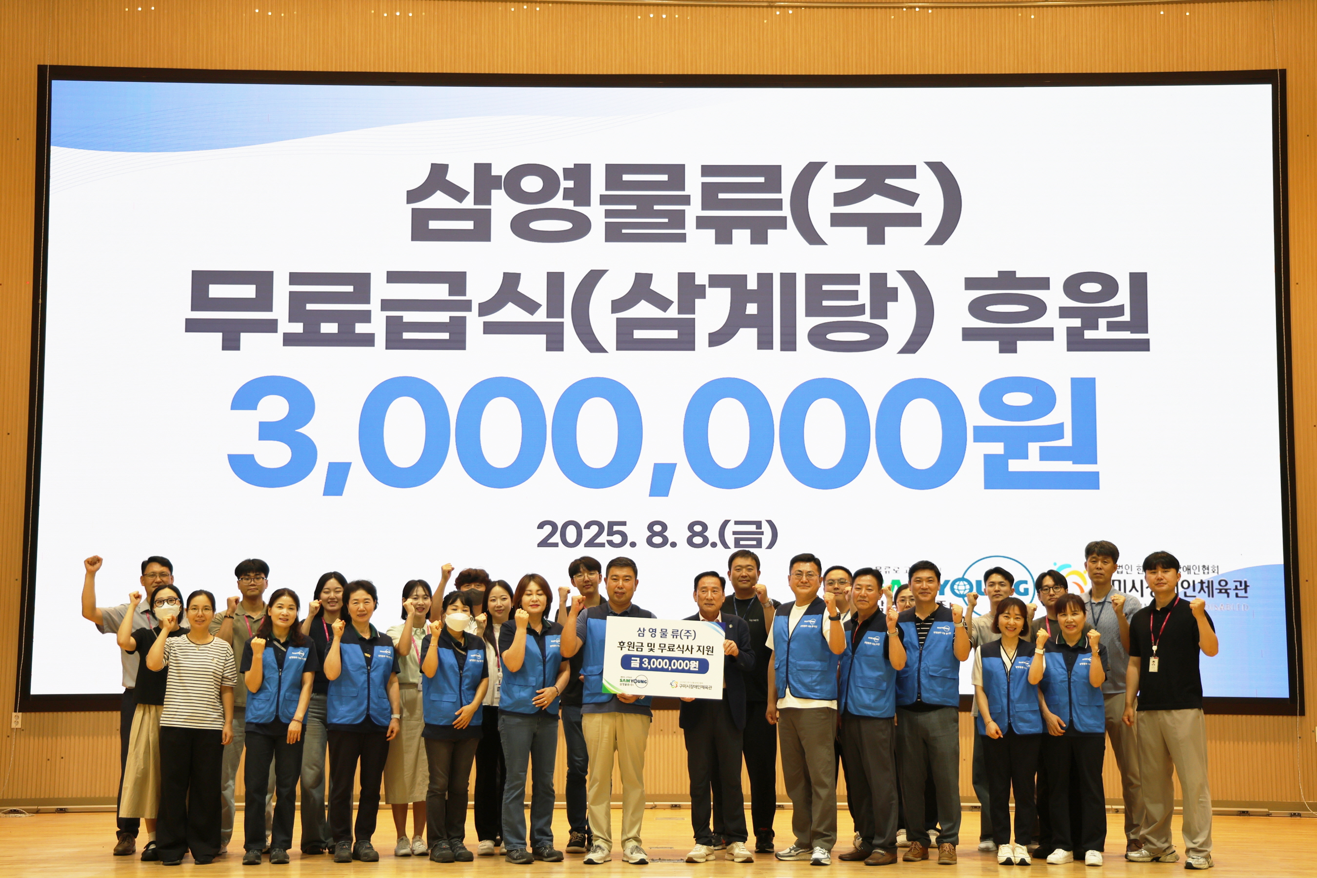 삼영물류(주)는 지난 8일 말복을 맞아 더위에 지친 지역 장애인들을 위해 구미시장애인체육관(관장 김휴진)에 300만원의 후원금(삼계탕 무료식사)을 전달했다.