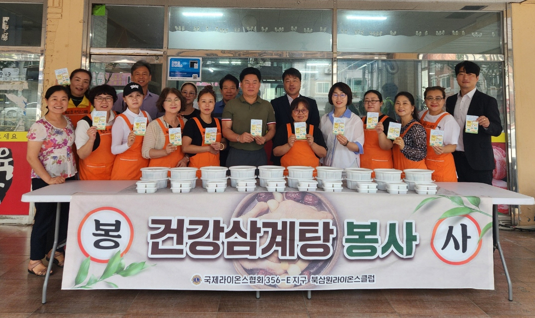 북삼원라이온스클럽(회장 지현자)은 말복을 맞아 지난 9일 관내 복지위기가구 20세대에 직접 만든 삼계탕을 전달하며 따뜻한 이웃사랑을 실천했다.