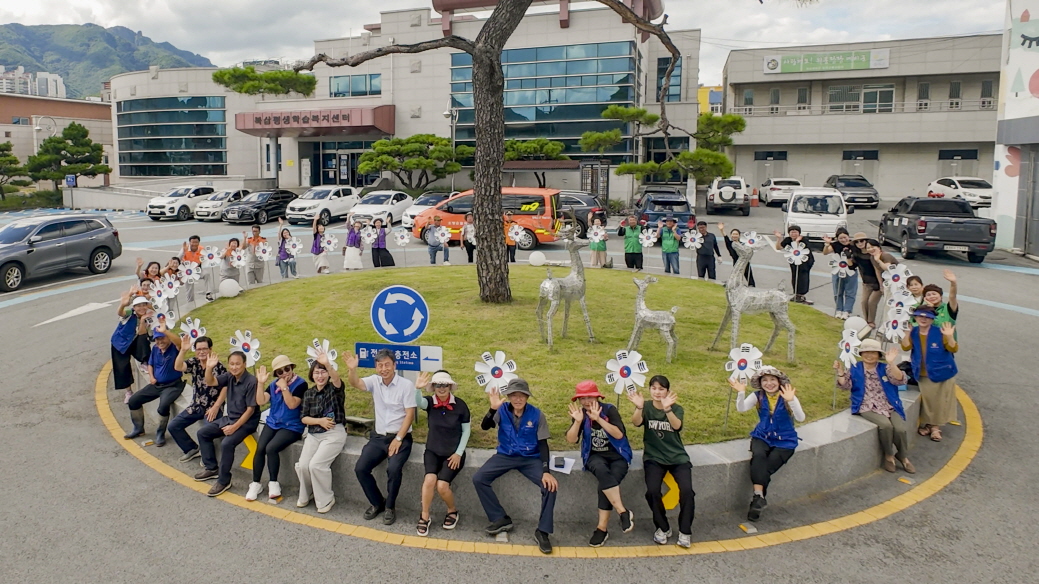 일상의 바람 속에서 돌아가는 태극기를 누구나 볼 수 있도록 했다. 북삼읍 이장협의회를 비롯한 13개 단체와 주민들이 뜻을 모았다. 사비를 모아 코스모스를 닮은 ‘태극기 바람개비’ 200여 개를 준비했다.