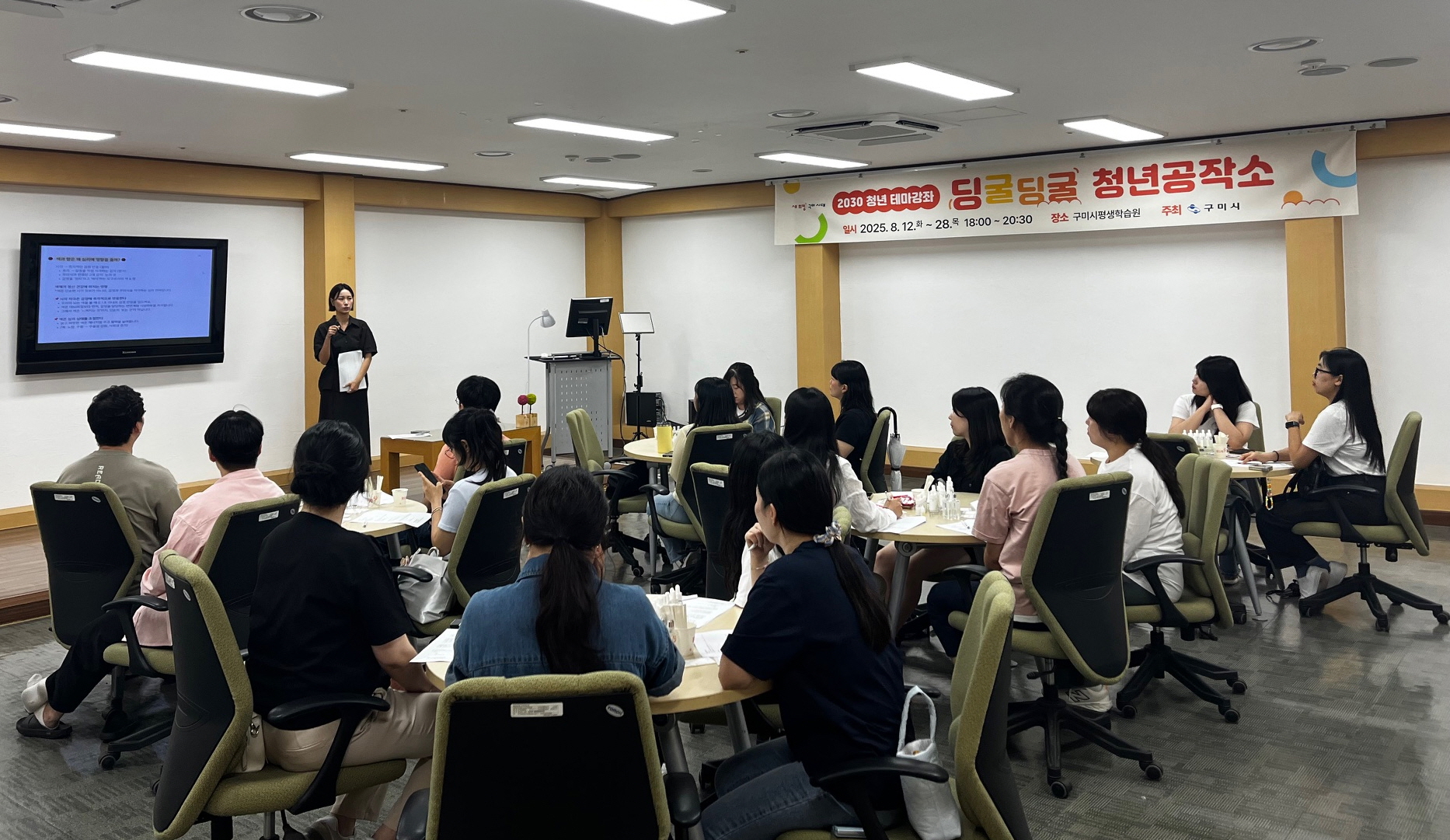 구미시는 8월 12일부터 2주간 구미시평생학습원 다목적 강의실에서 2030세대 청년 40명을 대상으로 ‘딩굴딩굴 청년공작소’를 운영한다.