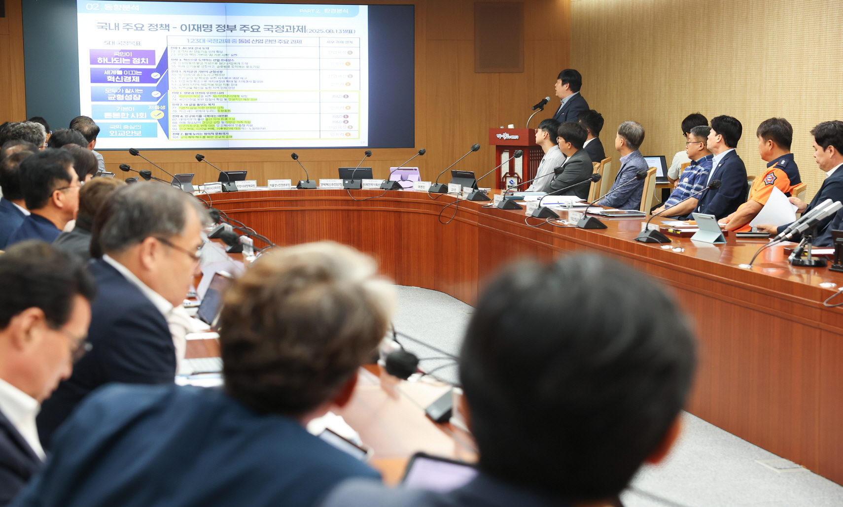 이날 회의는 ▵AI 기반 돌봄 로봇 산업육성 전략 발표 ▵도민 경청간담회, 국정과제 대응 세미나, 저출생 정책 평가센터 운영 시사점 및 대응 방안 보고 ▵실·국별 저출생과 전쟁 핵심 현안 및 2026년 주요 추진 사업 계획 논의 순으로 진행됐다.