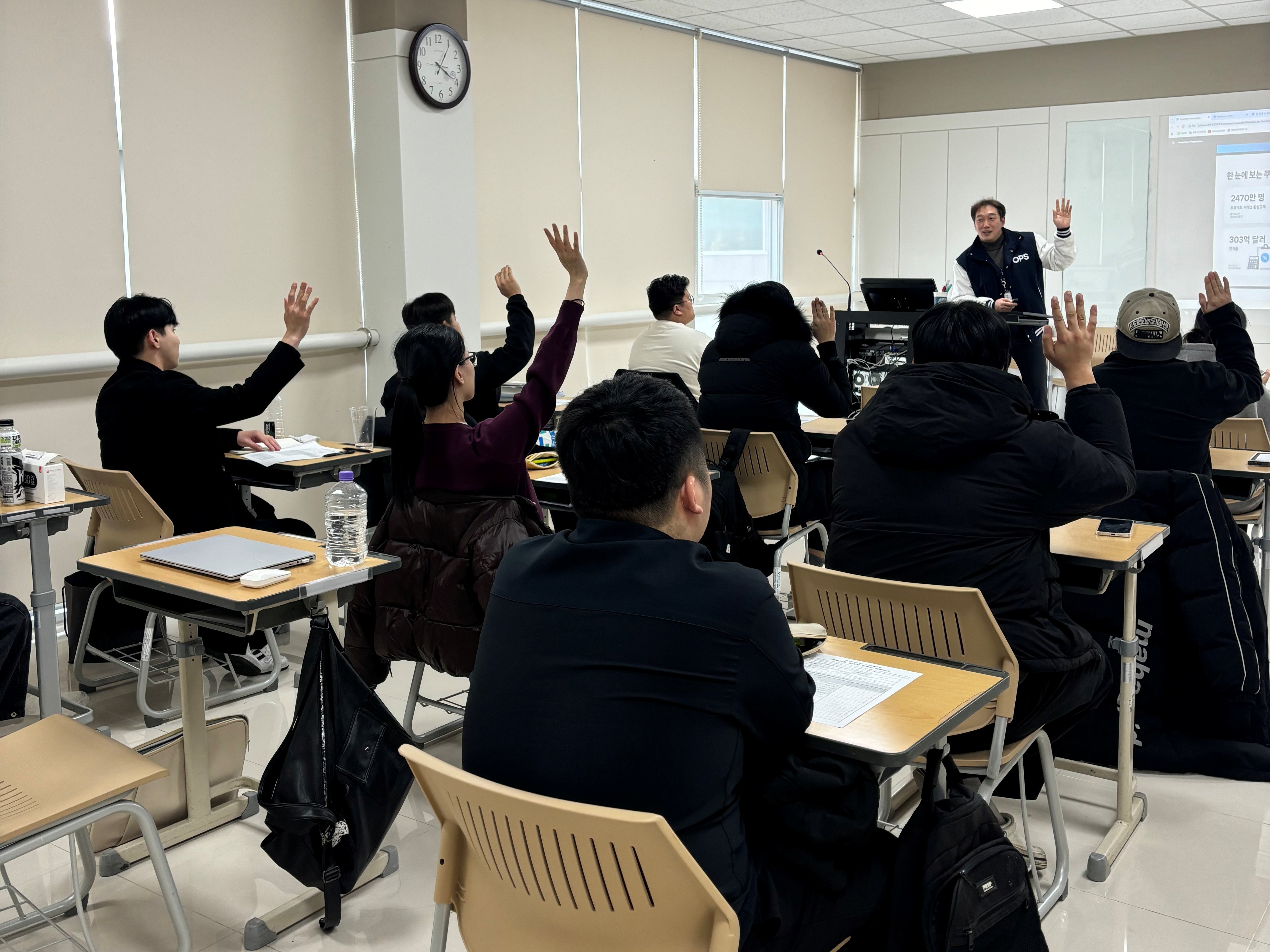 | ↑↑ 경북보건대학교 스마트물류 특강에서 서효석 센터장이 실무 중심 교육을 진행하며 학생들의 적극적인 참여를 이끌어내고 있다. |