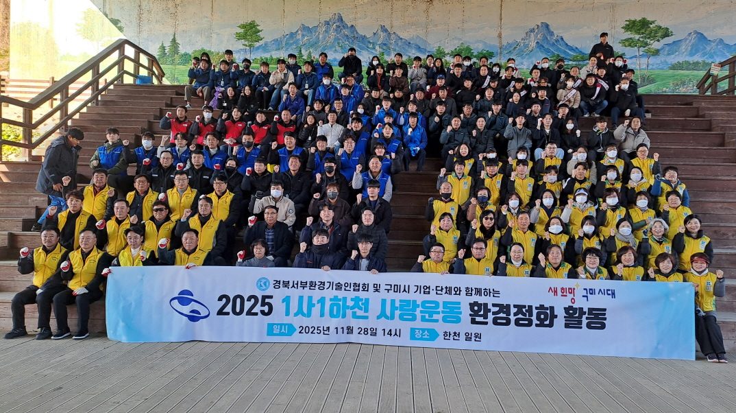 구미시는 지난 28일 양포동 한천 일원에서 ‘2025년 1사 1하천 사랑운동’의 일환으로 하천정화활동을 실시했다. 이번 활동에는 구미시가 주관하고 경북서부환경기술인협회 등 27개 기업과 민간단체 임직원 및 회원 등 160여 명이 참여했다.