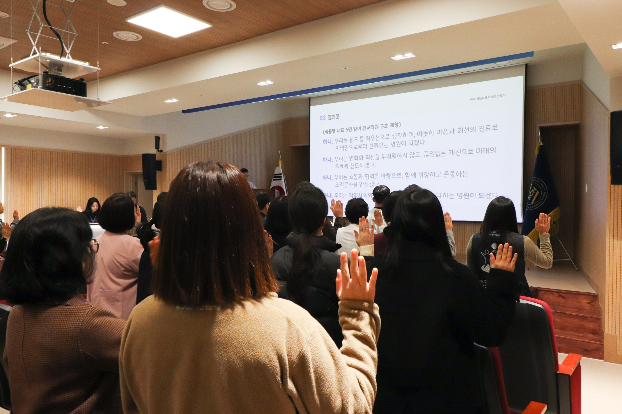 이번 선포식은 지난 11월 취임한 김성호 병원장이 프로젝트 추진과 함께 병원의 방향성을 명확히 제시하고 체계적인 혁신을 본격화하고자 마련된 것으로, 교직원 100여 명이 참석해 결의문을 제창하며 변화를 향한 의지를 함께 다졌다.