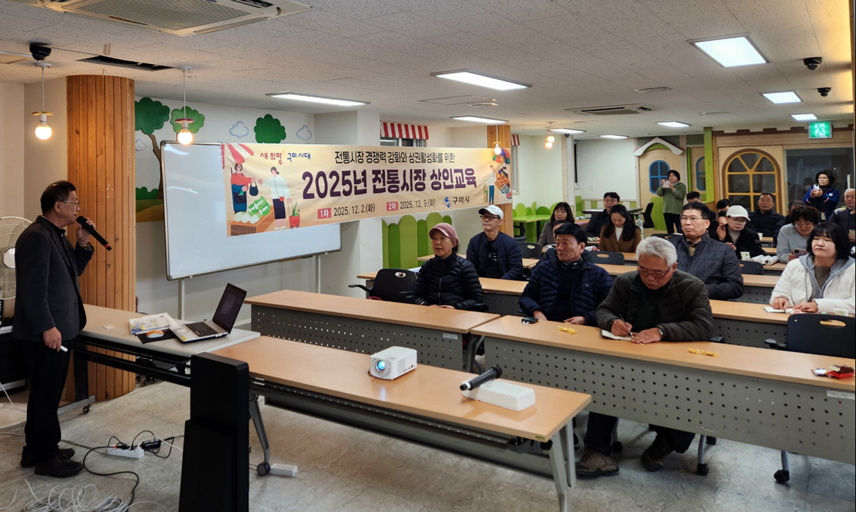 구미시는 급변하는 유통 환경 속에서 전통시장의 경쟁력을 확보하고 상인들의 자생력을 높이기 위해 12월 2일, 9일 양일간 관내 16개 전통시장 상인들을 대상으로 ‘2025년 전통시장 상인교육’을 실시한다.