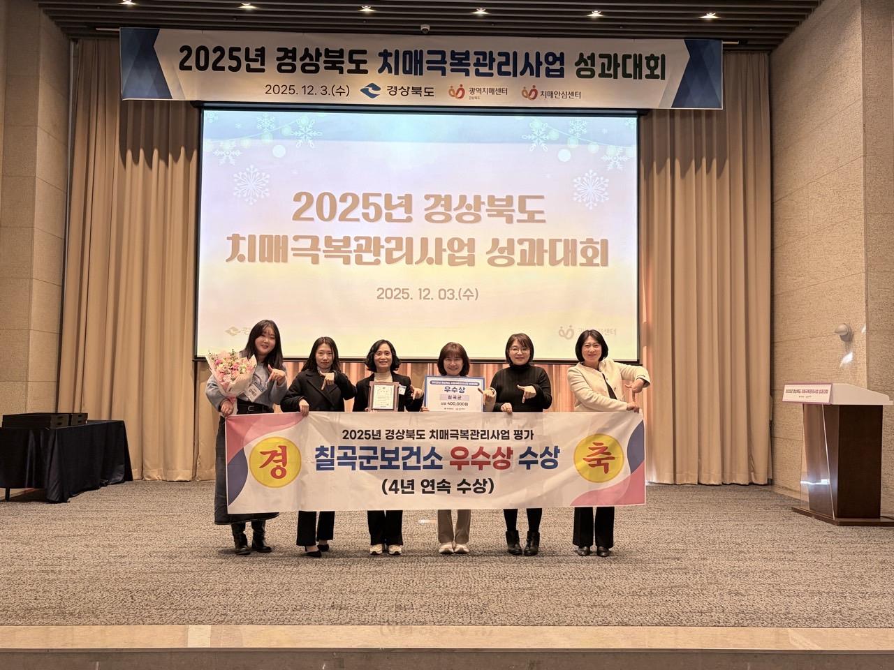 칠곡군 치매안심센터가 12월 3일 열린 ‘2025년 경북도 치매극복관리사업 성과대회’에서 우수상을 수상했다.