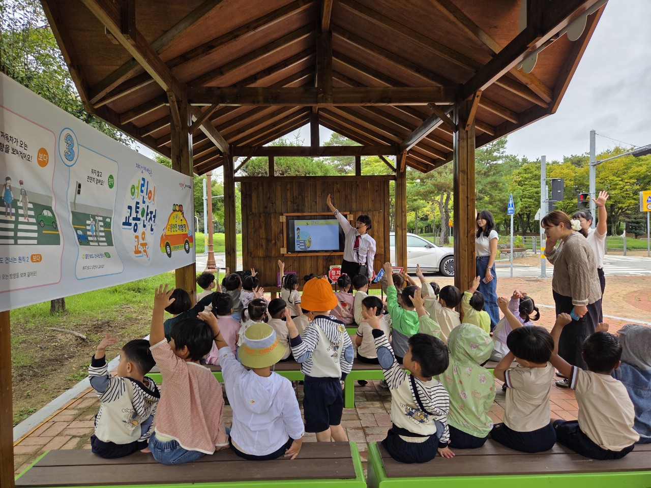 이번 교육은 경북안전생활실천시민연합 구미지부(대표 김중천)가 주관하고, 교통표지판 이해와 횡단보도 건너기, 자전거·킥보드 보호구 착용, 등·하굣길 통학버스 이용 방법 등 40분 과정으로 진행됐다. 실습 위주의 프로그램을 통해 아이들이 직접 위험 상황에 대처하는 법을 배우도록 구성한 것이 특징이다.