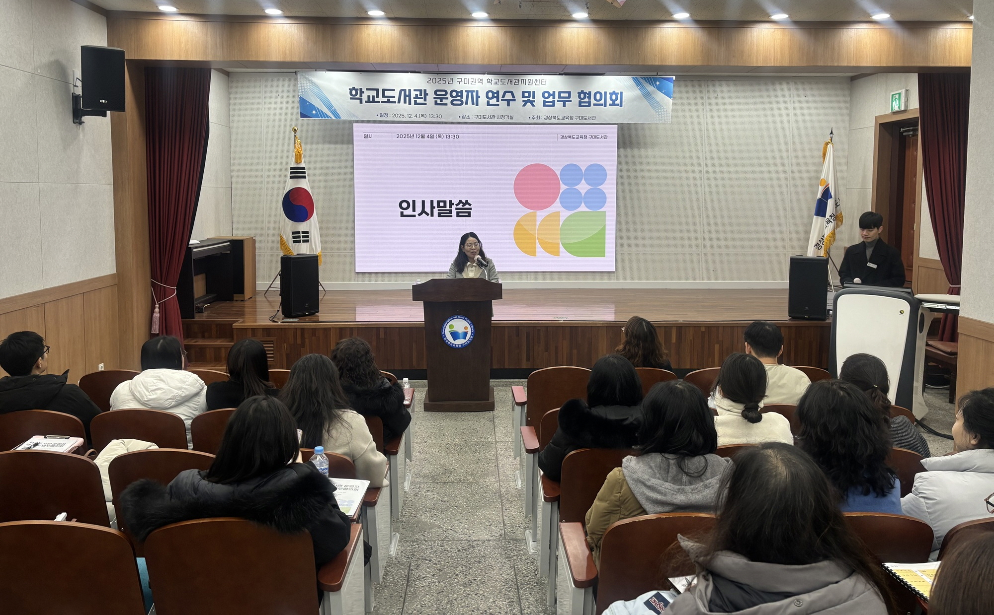 경상북도교육청 구미도서관(관장 최선지)은 12월 4일 학교도서관 관계자를 대상으로 구미권역 학교도서관 운영자 연수를 실시하고 학교도서관 활성화를 위한 지원방향을 논의하기 위해 업무협의회를 개최했다.