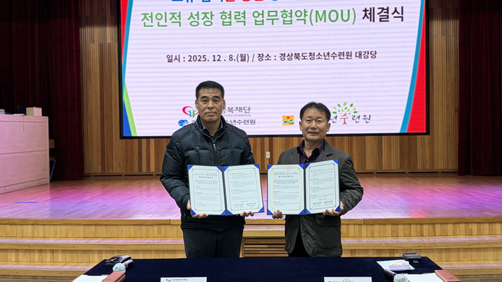 경북행복재단 산하 경상북도청소년수련원(원장 최진모)은 지난 8일 전라남도청소년수련원(원장 이춘복)과 상호 신뢰를 바탕으로 밝고 건강한 청소년의 성장을 돕고, 협력 기반 조성과 미래지향적 관계 발전을 위한 업무협약(MOU)을 체결했다.