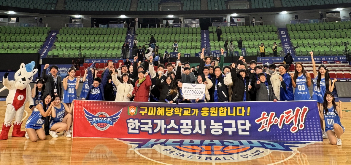 구미혜당학교(교장 정혜경) 학생 및 교직원 60여명은 지난 10일 한국가스공사 페가수스 농구단의 초청을 받아 대구실내체육관에서 열린 홈경기를 단체 관람했다.