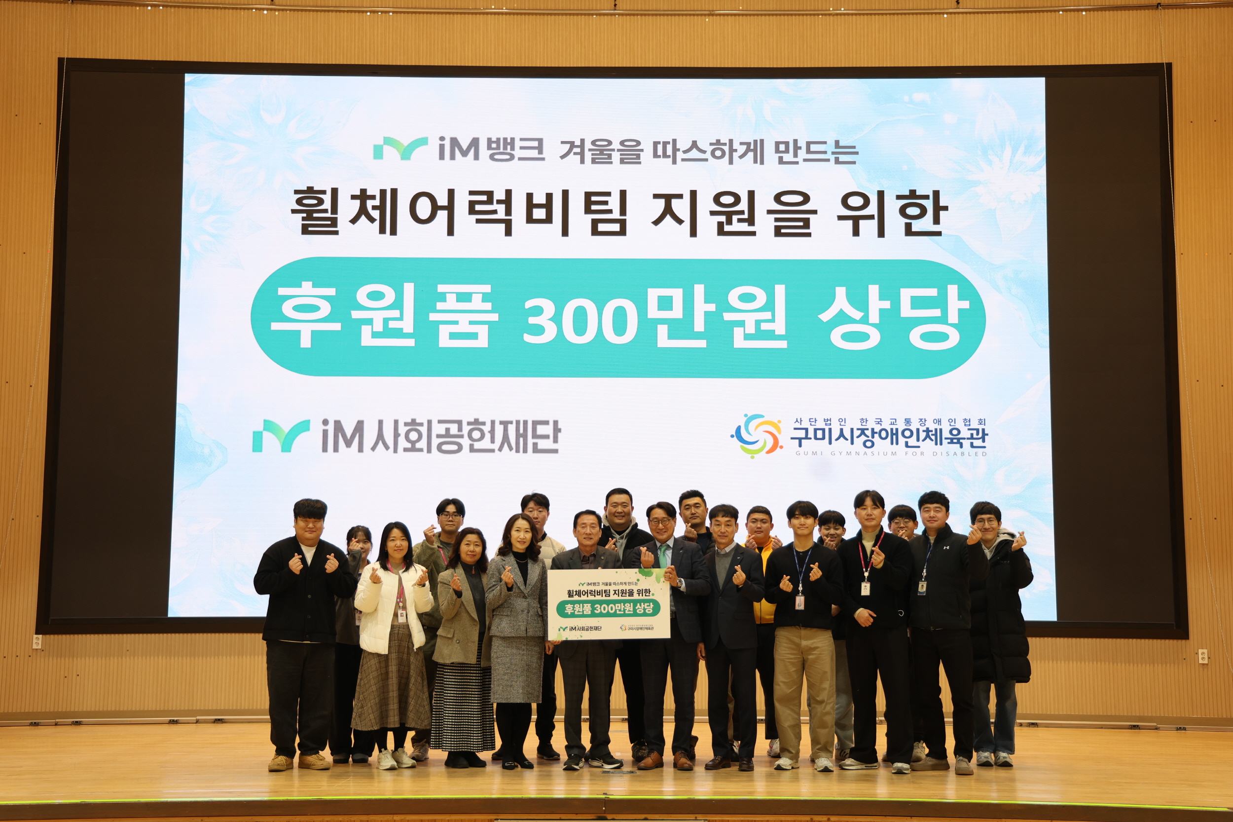 iM사회공헌재단는 지난 12일 구미시장애인체육관(관장 김휴진)에게 지역 장애인들의 따뜻한 연말을 위해 온기가 담긴 후원금 300만원을 전달했다.