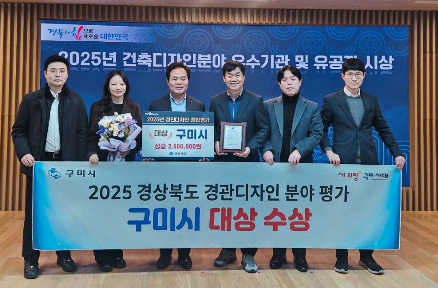 구미시는 지난 16일 ‘2025 경상북도 경관디자인 분야 업무추진 평가’에서 대상을 수상했다.