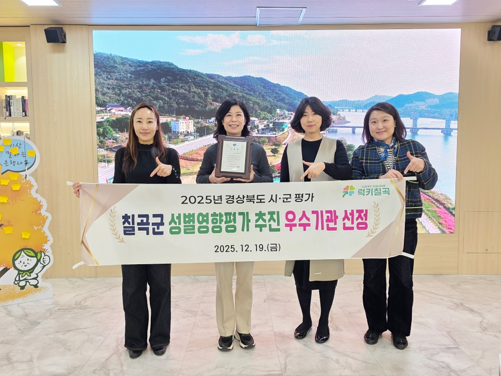 칠곡군은 경북도 주관 「2025년 성별영향평가추진 우수기관」으로 선정되어 3년 연속 수상의 영예를 안았다.