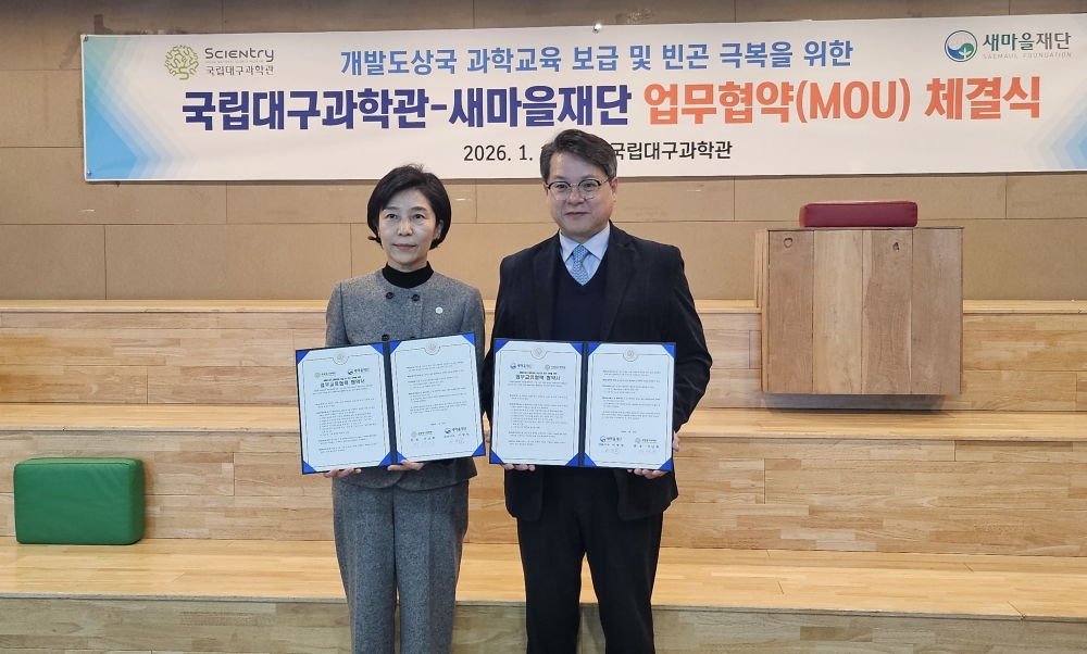 새마을재단(대표이사 이영석)은 1월 16일 국립대구과학관과 개발도상국 과학교육 보급 및 빈곤 극복을 위한 업무협약(MOU)을 체결했다.