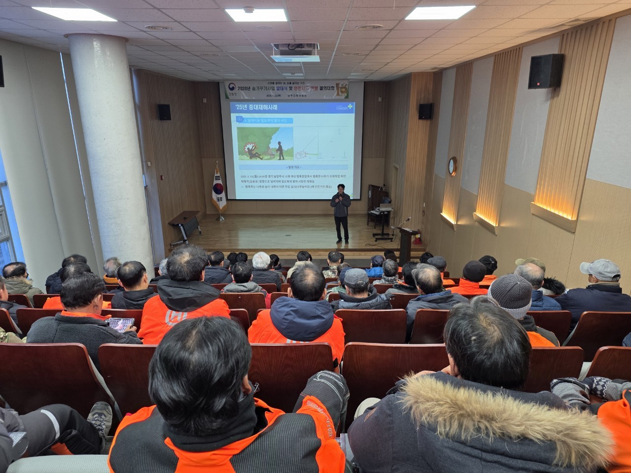 안전보건공단 경북지역본부(본부장 우용하)는 1월 22일 남부지방산림청에서 열린 ‘2026년 숲가꾸기 사업 발대식 및 안전사고 예방 결의대회’에 참여해 산림 분야 종사자들을 대상으로 실무 중심의 안전보건 교육을 진행했다.