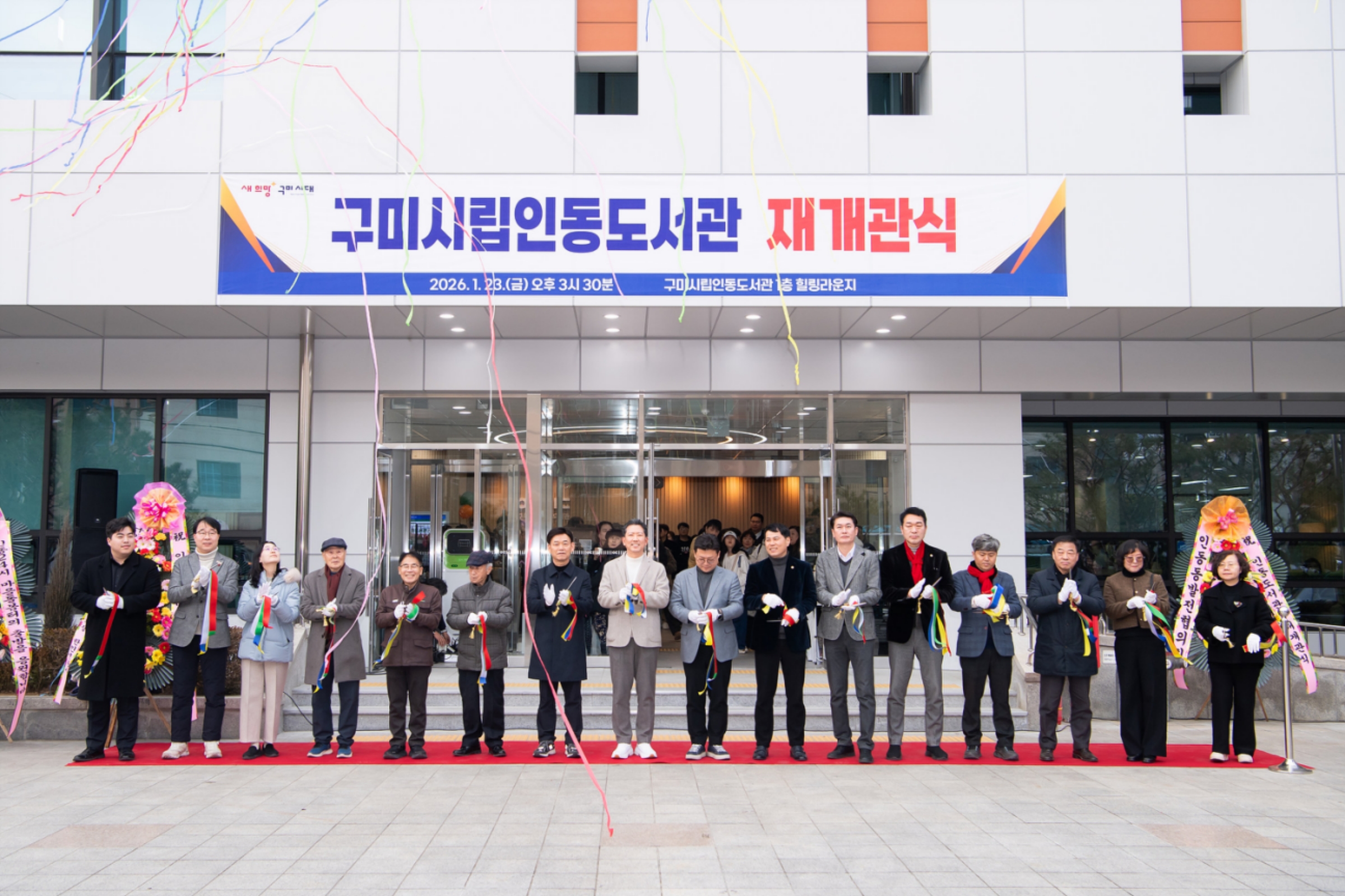 김장호 구미시장은 “25년 역사를 지닌 인동도서관이 그린리모델링과 환경개선사업을 통해 지속가능한 복합문화공간으로 거듭났다”며 “시민들이 이 공간에서 문화와 휴식을 함께 누리며 일상의 여유를 채우길 기대한다.”고 말했다.