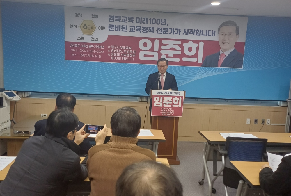 임준희 전 대구시 부교육감(63년생)은 1월 28일 경북교육청 브리핑실에서 기자회견을 열고 오는 6월 3일 치러지는 경상북도교육감 선거 출마를 공식 선언했다.