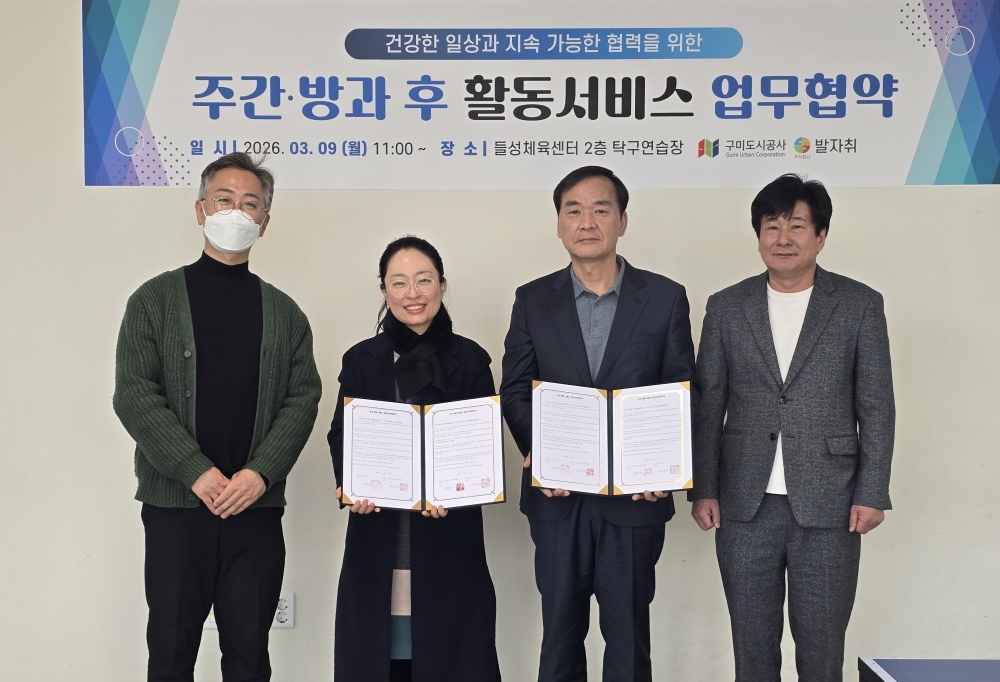 구미도시공사 들성생활체육센터는 지난 9일 지역 내 사회적 약자의 복지증진과 건강한 성장을 지원하기 위해 ‘구미 발자취 주간활동센터’와 업무협약을 체결했다.
