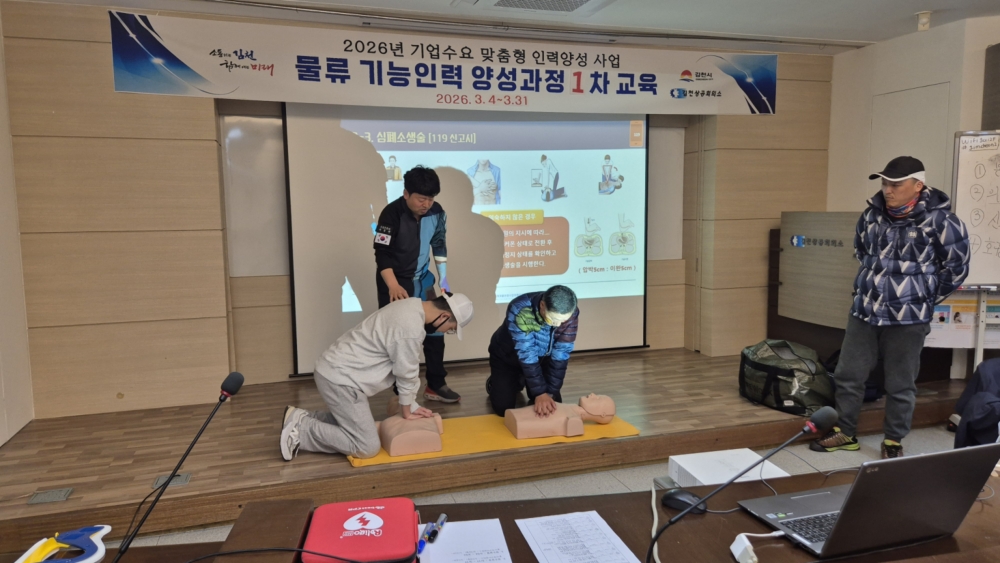 김천상공회의소(회장 안용우)는 지난 3월 12일 ‘2026년 기업수요 맞춤령 인력양성사업’의 일환인 ‘물류기능 인력양성 과정’의 1차 과정 교육생을 대상으로 취업역량강화 및 산업안전 관련 특강을 실시했다.