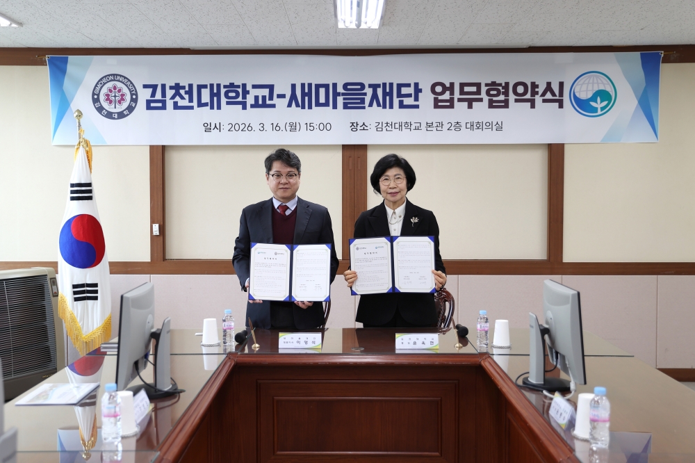 새마을재단(대표이사 이영석)은 지난 3월 16일 김천대학교와 국내외 새마을운동 관련 사업 활성화와 국제교류협력 확대를 위한 업무협약(MOU)을 체결했다. 이번 협약은 양 기관이 보유한 인적·물적 자원과 전문성을 바탕으로 상호 협력체계를 구축하고, 글로벌 청년 인재 양성과 인류 공동 번영에 기여하기 위해 마련됐다.