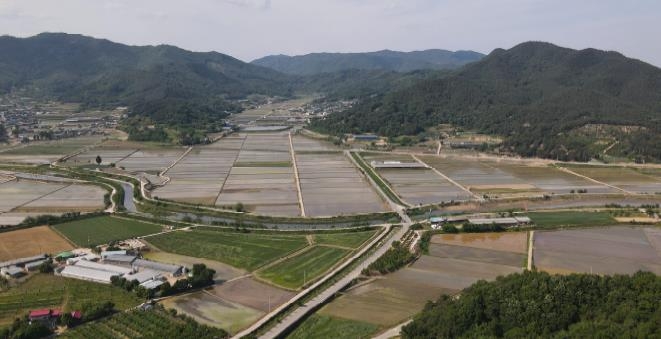 구미시는 무을면 웅곡리 일원에 2023년부터 총사업비 16억 5천만원을 투입해 ‘경북형 혁신 농업타운’ 조성사업을 추진하고 있다. 참여농가 61호, 54ha 규모다. 개별 농가 중심의 관행 농업에서 벗어나 마을 법인이 위탁 영농을 수행하고 수익을 배분하는 공동영농 모델을 도입했다.