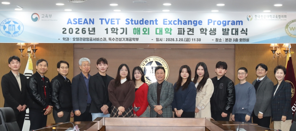 구미대는 교육부와 한국전문대학교육협의회가 주관하는 아세안 TVET 학생교류 사업에 2024년부터 선정되어 현재까지 태국과 인도네시아에 호텔관광항공서비스과 및 특수건설기계공학부 학생들이 참여하고 있다.