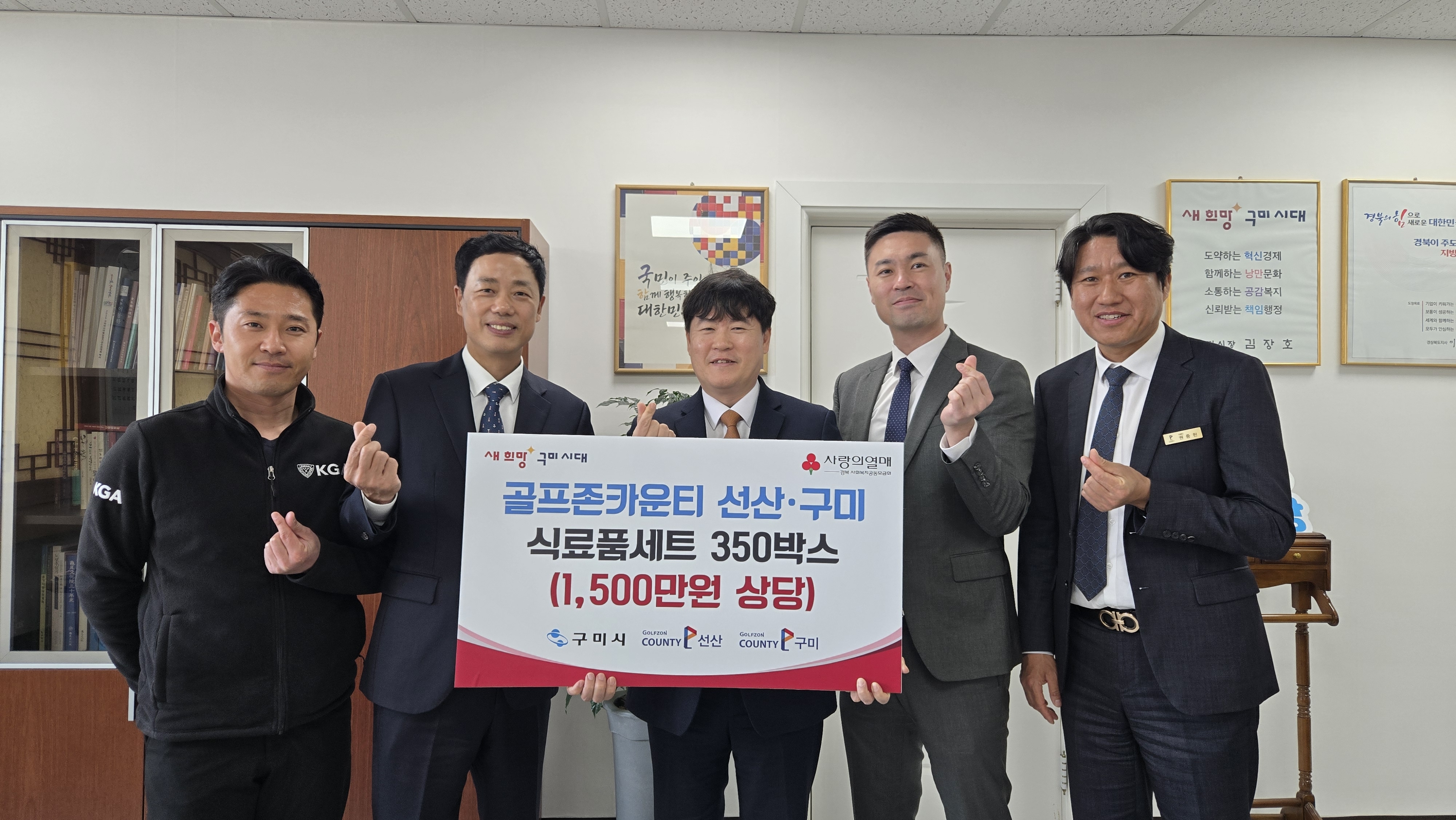 구미시는 지난 26일 골프존카운티 선산·구미로부터 저소득 취약계층 지원을 위한 행복나눔 식료품세트 350박스(1,500만 원 상당)를 전달받았다.