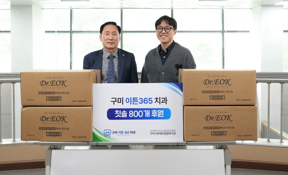 구미이튼365치과는 2024년 9월 450개의 칫솔을 후원한 데 이어, 올해는 800개로 후원 규모를 확대하며 지역사회 나눔을 이어가고 있다.