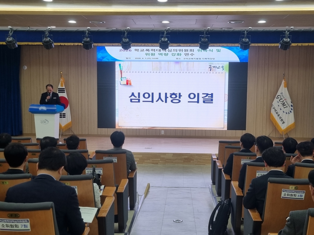 구미교육지원청(교육장 민병도)은 4월 1일 학교폭력대책심의위원회 심의위원 50여 명이 참석한 가운데 2026 학교폭력대책심의위원회 위촉식 및 위원 역량 강화 연수를 개최했다.