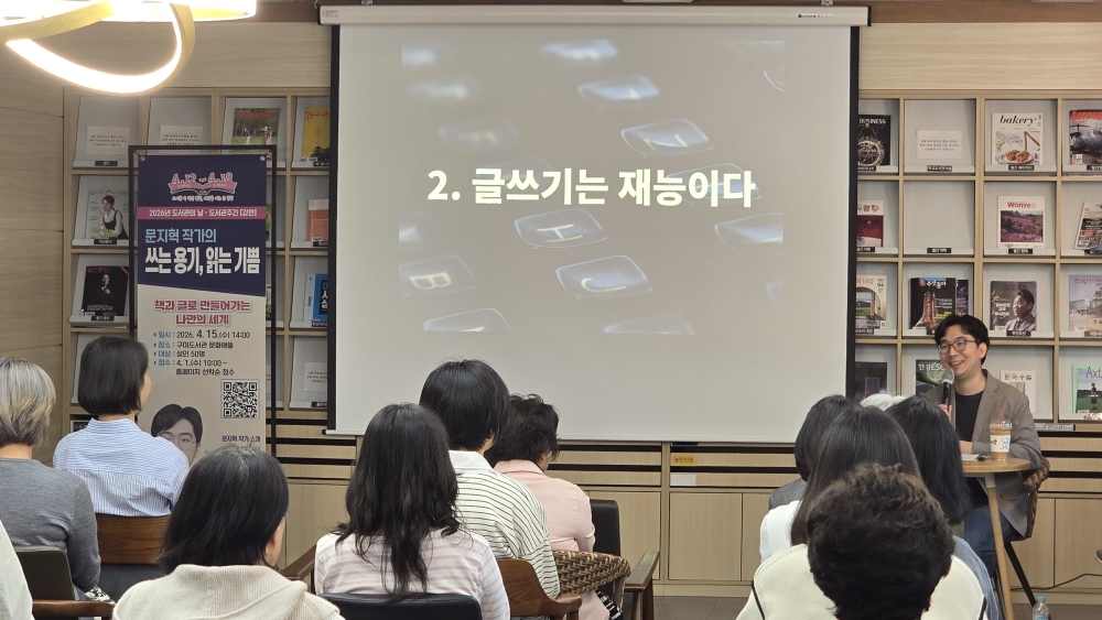 강연에 참여한 한 지역주민은 “글쓰기가 어렵게만 느껴졌는데, 오늘 강연을 통해 한 문장부터 시작해보고 싶다는 용기를 얻었다.”며, “읽고 쓰는 시간이 나를 돌아보는 소중한 시간이 될 것 같다.”고 소감을 밝혔다.